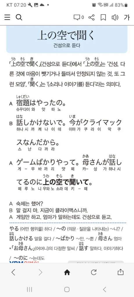 上の空で聞く。