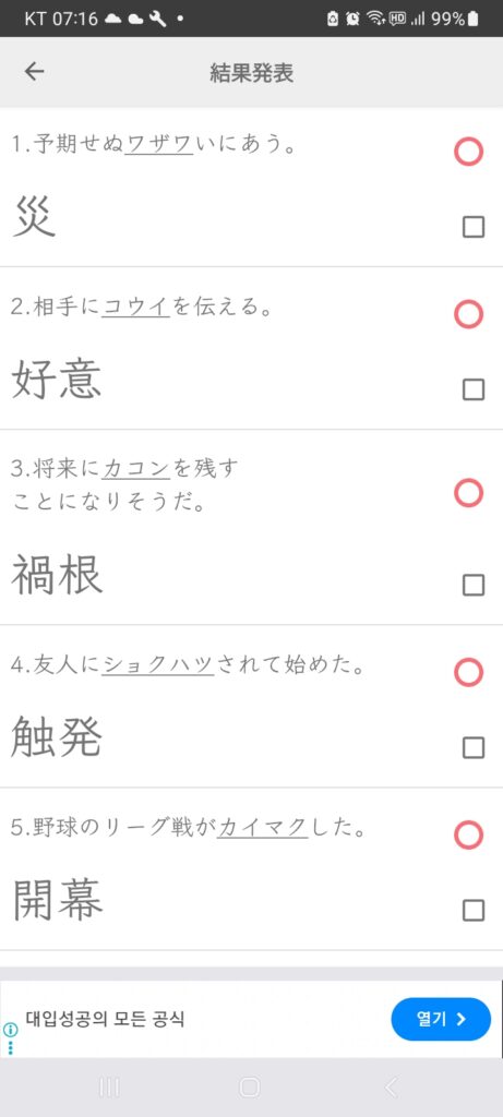 목요일(라인에서) 김 인화2026/04/09 7:21 오전2026/04/09 7:21 오전목요일(라인에서)에 1개 댓글 <span class="nav-subtitle screen-reader-text">Page</span> Previous Post~을 밑돌다Next Post로봇이 친숙한 존재가 되다 One Comment かこん [禍根] 화근. 출처: 민중서림 엣센스 일한사전 관련 한자 禍 재앙 화 부수 示 총획 13획 음독 か 根 뿌리 근 부수 木 총획 10획 음독 こん 훈독 ね 답글을 남기기 위해 로그인하기 답글 남기기 응답 취소댓글을 달기 위해서는 로그인해야합니다.
