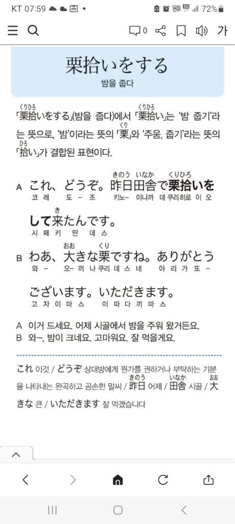 밤을 줍다(복습) 김 인화2025/11/01 8:01 오전2025/11/01 8:01 오전밤을 줍다(복습)에 1개 댓글 <span class="nav-subtitle screen-reader-text">Page</span> Previous Post~에 종사하다(복습)Next Post즐토 One Comment 栗拾いをする 답글을 남기기 위해 로그인하기 답글 남기기 응답 취소댓글을 달기 위해서는 로그인해야합니다.