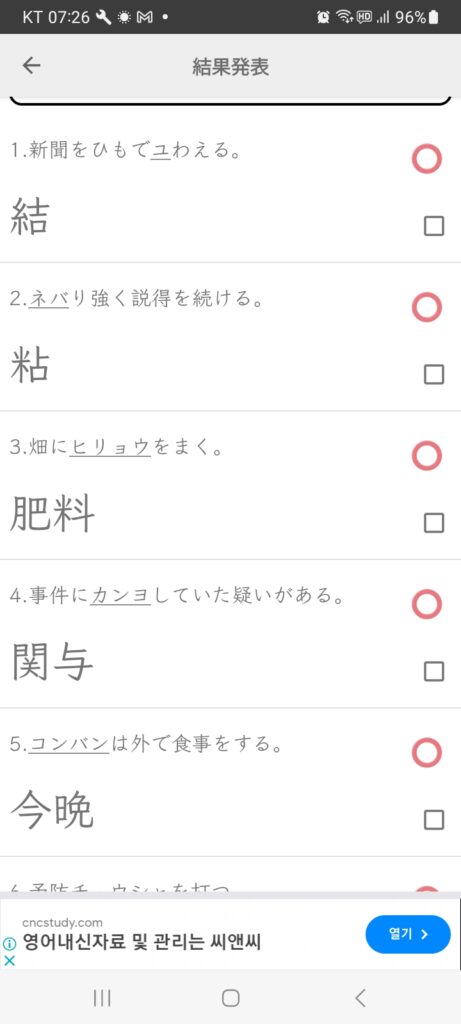불금 김 인화2025/04/18 7:39 오전불금에 1개 댓글 <span class="nav-subtitle screen-reader-text">Page</span> Previous Post이도저도 아니게 되다Next Post탕감하다 One Comment ゆわ-える [結わえる] 악센트 3음절 강조 ゆわえる 예문 열기 하1단 타동사관련 한자 하1단 타동사 1. 매다; 묶다. 髪かみにリボンを結ゆわえる 머리에 리본을 매다 답글을 남기기 위해 로그인하기 답글 남기기 응답 취소댓글을 달기 위해서는 로그인해야합니다.