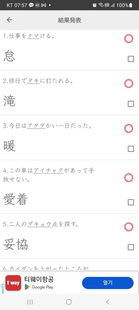 수요일 김 인화2024/09/25 8:00 오전수요일에 1개 댓글 <span class="nav-subtitle screen-reader-text">Page</span> Previous Post망설이다,꽁무니를 빼다Next Post뒤치다꺼리를 하다 One Comment なまける [怠ける·懶ける] 1. 게으름 피우다, 게을리하다. (=さぼる, おこたる), (↔努める) 2. 기운이 없어지다, 녹초가 되다. 3. (날붙이가) 무디어지다. 출처: 민중서림 엣센스 일한사전 관련 한자 怠 게으를 태 부수 心 총획 9획 음독 たい 훈독 おこたる·なまける 답글을 남기기 위해 로그인하기 답글 남기기 응답 취소댓글을 달기 위해서는 로그인해야합니다.
