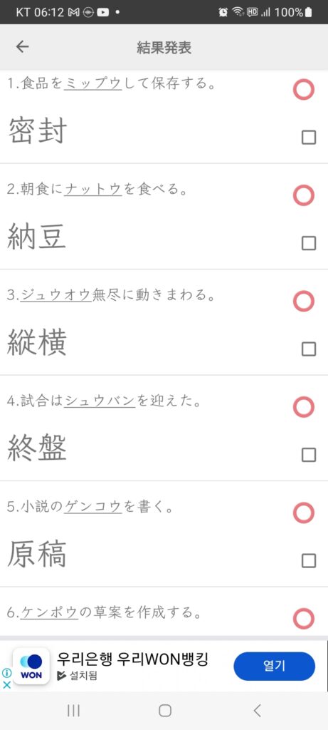 수요일 김 인화2024/12/25 8:31 오전수요일에 1개 댓글 <span class="nav-subtitle screen-reader-text">Page</span> Previous Post크리스마스 이브는 연인과 보내다Next Post신뢰에 보답하다(복습) One Comment みっぷう [密封] 밀봉, 단단히 봉함. (=厳封) 출처: 민중서림 엣센스 일한사전 관련 한자 密 빽빽할 밀 부수 宀 총획 11획 음독 みつ 封 봉할 봉 부수 寸 총획 9획 음독 ふう·ほう 답글을 남기기 위해 로그인하기 답글 남기기 응답 취소댓글을 달기 위해서는 로그인해야합니다.