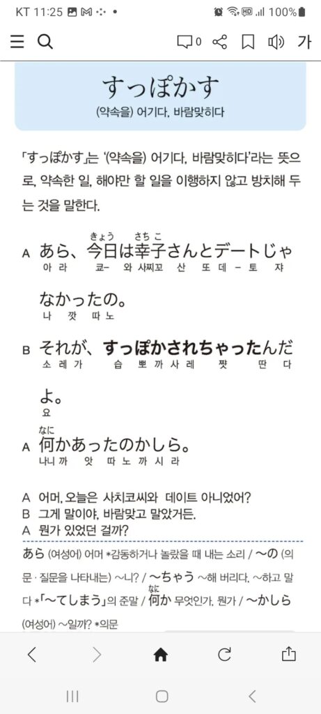 약속을 어기다,바람맞히다(복습) 김 인화2025/01/05 11:33 오전2025/01/05 11:33 오전약속을 어기다,바람맞히다(복습)에 1개 댓글 <span class="nav-subtitle screen-reader-text">Page</span> Previous Post일요일Next Post월요일(인문학강의 일) One Comment すっぽかす 답글을 남기기 위해 로그인하기 답글 남기기 응답 취소댓글을 달기 위해서는 로그인해야합니다.