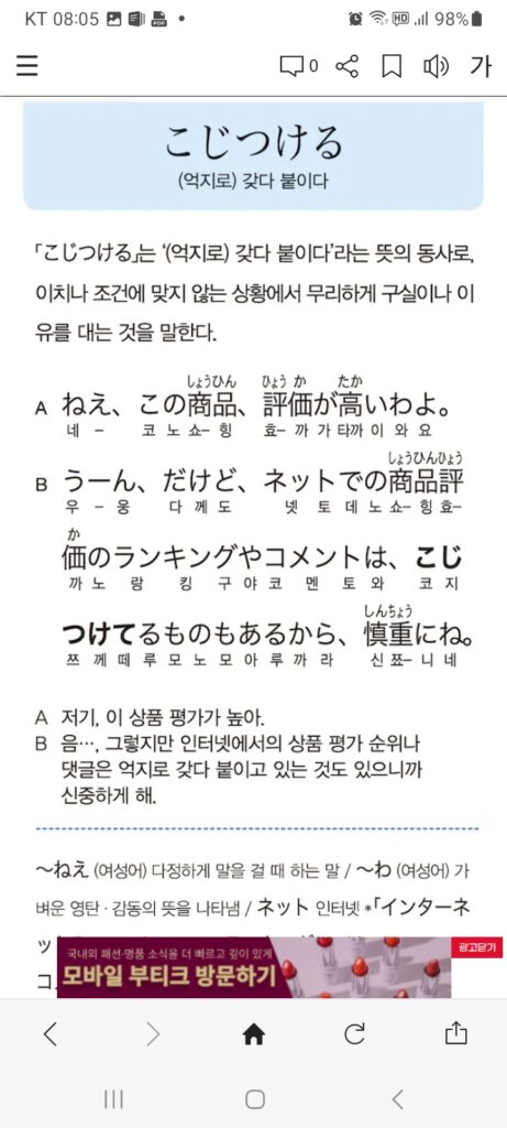 억지로 갖다붙이다(복습) 김 인화2024/09/15 20:23 오후2024/09/15 20:24 오후억지로 갖다붙이다(복습)에 1개 댓글 <span class="nav-subtitle screen-reader-text">Page</span> Previous Post2024-09-14Next Post일요일 One Comment こじつける。 답글을 남기기 위해 로그인하기 답글 남기기 응답 취소댓글을 달기 위해서는 로그인해야합니다.