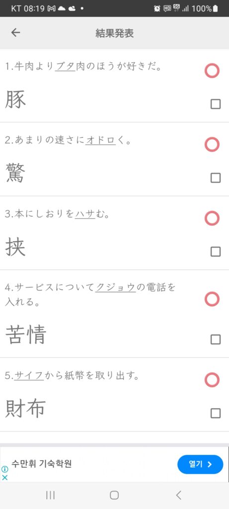 월요일 김 인화2024/11/04 8:24 오전월요일에 1개 댓글 <span class="nav-subtitle screen-reader-text">Page</span> Previous Post가볍게 땀을 흘리다(복습)Next Post나이를 거스리다 One Comment くじょう [苦情] 1. 불평2. 괴로운 사정 발음 예문 열기 명사복합어관련 한자 명사 1. 불평; 불만; 푸념. 苦情くじょうを言いう 불평하다 2. 괴로운 사정; 고충. 苦情くじょう処理しょり機関きかん 고충 처리 기관 답글을 남기기 위해 로그인하기 답글 남기기 응답 취소댓글을 달기 위해서는 로그인해야합니다.