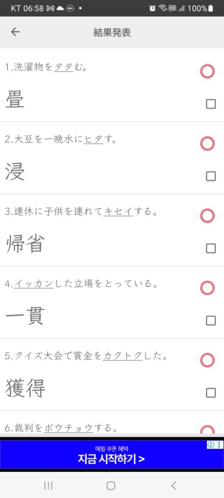 월요일 김 인화2025/09/15 7:31 오전2025/09/15 7:31 오전월요일에 1개 댓글 <span class="nav-subtitle screen-reader-text">Page</span> Previous Post부드럽게 잘 구워지다(복습)Next Post잠에서 잘 깨다 One Comment 한국어입력기 일본어 필기입력기 음성인식기 사진인식기 한국어입력기 상세 검색 전체 단어 뜻풀이 예문 ★ JLPT N1 ひたす [浸す] 1. 담그다 2. 잠그다 3. 변하여, 흠뻑 적시다 발음 ます형 浸 ひた します더보기 악센트 강조없음 ひたす 2음절 강조 ひたす 후리가나 예문 열기 5단활용 타동사 1. (물이나 액체에) 담그다; 잠그다; 변하여, 흠뻑 적시다. 小川 おがわ の 水 みず に 足 あし を 浸 ひた す 냇물에 발을 담그다 답글을 남기기 위해 로그인하기 답글 남기기 응답 취소댓글을 달기 위해서는 로그인해야합니다.