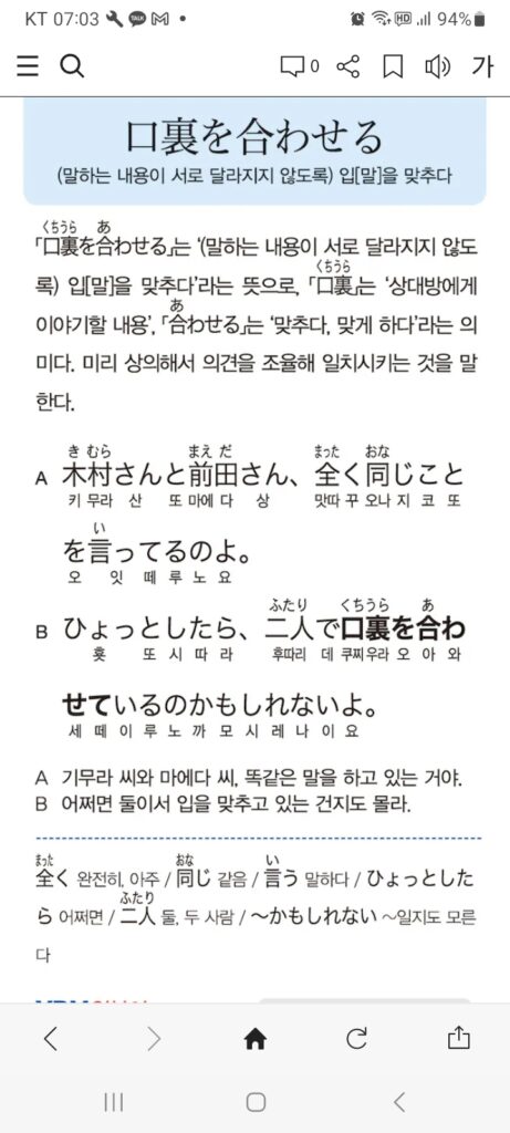 (입)말을 맞추다 김 인화2025/05/21 7:09 오전2025/05/21 7:10 오전(입)말을 맞추다에 1개 댓글 <span class="nav-subtitle screen-reader-text">Page</span> Previous Post체면을세우다Next Post수요일 One Comment 口裏を合わせる。 답글을 남기기 위해 로그인하기 답글 남기기 응답 취소댓글을 달기 위해서는 로그인해야합니다.