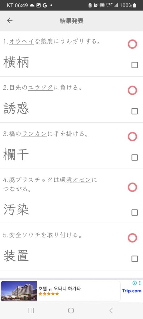 불금 김 인화2025/10/31 7:26 오전2025/10/31 17:54 오후불금에 1개 댓글 <span class="nav-subtitle screen-reader-text">Page</span> Previous Post나설차례가 없다Next Post~에 종사하다(복습) One Comment おうへい [横柄] 건방짐, 방자하고 거만함. (=尊大) 出処: エッセンス 日韓辞典-民衆書林 관련 한자 横 가로 횡 부수 木 총획 15획 음독 おう 훈독 よこ 柄 자루 병 부수 木 총획 9획 음독 へい 훈독 え·がら 답글을 남기기 위해 로그인하기 답글 남기기 응답 취소댓글을 달기 위해서는 로그인해야합니다.