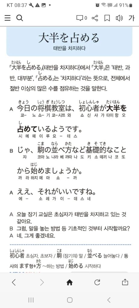 태반을 차지하다(복습) 김 인화2025/03/30 8:41 오전2025/03/30 8:46 오전태반을 차지하다(복습)에 1개 댓글 <span class="nav-subtitle screen-reader-text">Page</span> Previous Post일요일Next Post여러 나라에 가 보고 싶다 One Comment 大半を占める。 답글을 남기기 위해 로그인하기 답글 남기기 응답 취소댓글을 달기 위해서는 로그인해야합니다.