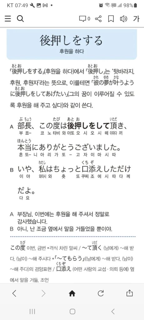 후원을 하다(복습) 김 인화2025/04/13 7:51 오전2025/04/13 7:51 오전후원을 하다(복습)에 1개 댓글 <span class="nav-subtitle screen-reader-text">Page</span> Previous Post일요일Next Post~일색,~투성이 One Comment 後押しをする。 답글을 남기기 위해 로그인하기 답글 남기기 응답 취소댓글을 달기 위해서는 로그인해야합니다.