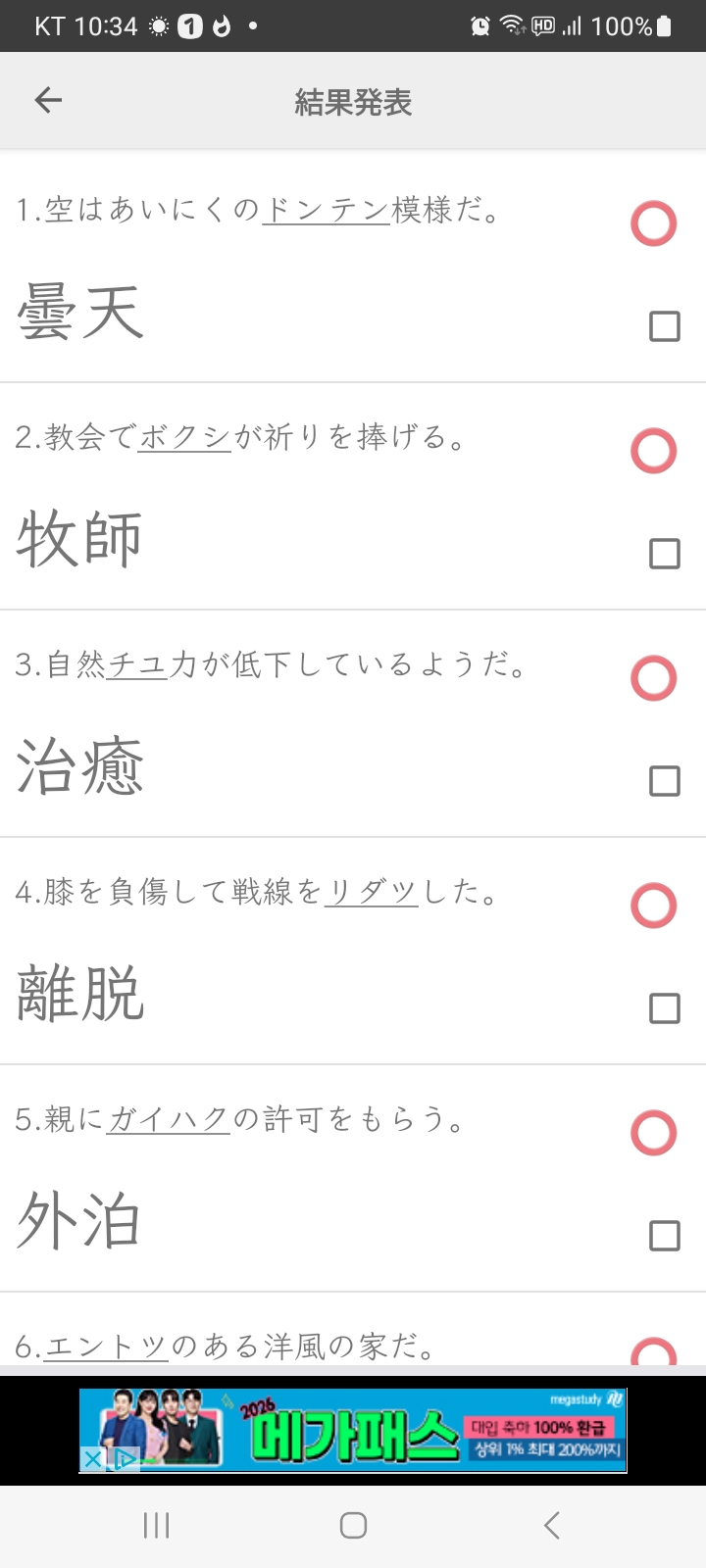 일요일 김 인화2025/01/12 9:22 오전2025/01/12 9:23 오전일요일에 1개 댓글 <span class="nav-subtitle screen-reader-text">Page</span> Previous Post무엇을 샀습니까_가애숙_01/11Next Post땅바닥에 주저앉다(복습) One Comment どんてん [曇天] 담천, 흐린 날씨. (↔晴天) 출처: 민중서림 엣센스 일한사전 관련 한자 曇 흐릴 담 부수 日 총획 16획 음독 どん 훈독 くもる 天 하늘 천 부수 大 총획 4획 음독 てん 훈독 あま·あめ 답글을 남기기 위해 로그인하기 답글 남기기 응답 취소댓글을 달기 위해서는 로그인해야합니다.